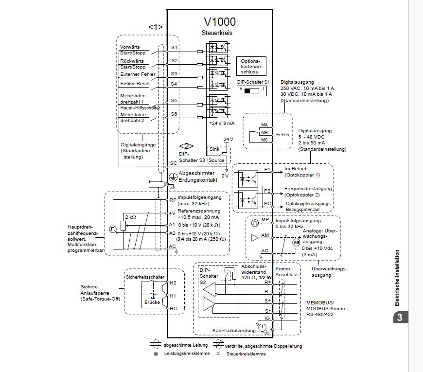 Grundsätzlich die Frage bei diesem FU. Ich habe hier den Steueranschluß. Meine Dipschalter S1 und S3 haben folgende Einstellungen.