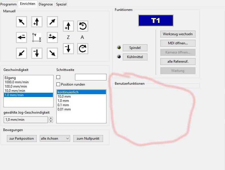 Das Programm ist nun gestartet und mit der Steuerung verbunden. Der Not-Aus-Schalter wurde in beiden Schaltzuständen erkannt und die Motoren erhalten ein wenig Strom (sie halten die Position sehr vehement). Versuche ich nun eine Referenzfahrt oder eine manuelle Bewegung zu starten, bewegen sich die Motoren nicht.